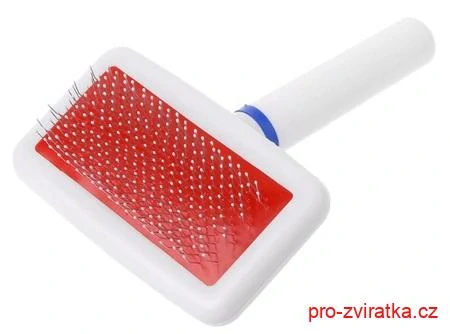 Drátkový kartáč pro malá plemena psů a koček. Rozměry 10 x 5,5 cm. Drátky jsou zakončeny kuličkami, takže pejska neškrábou. Vhodný na dlouhou srst i srst s podsadou.